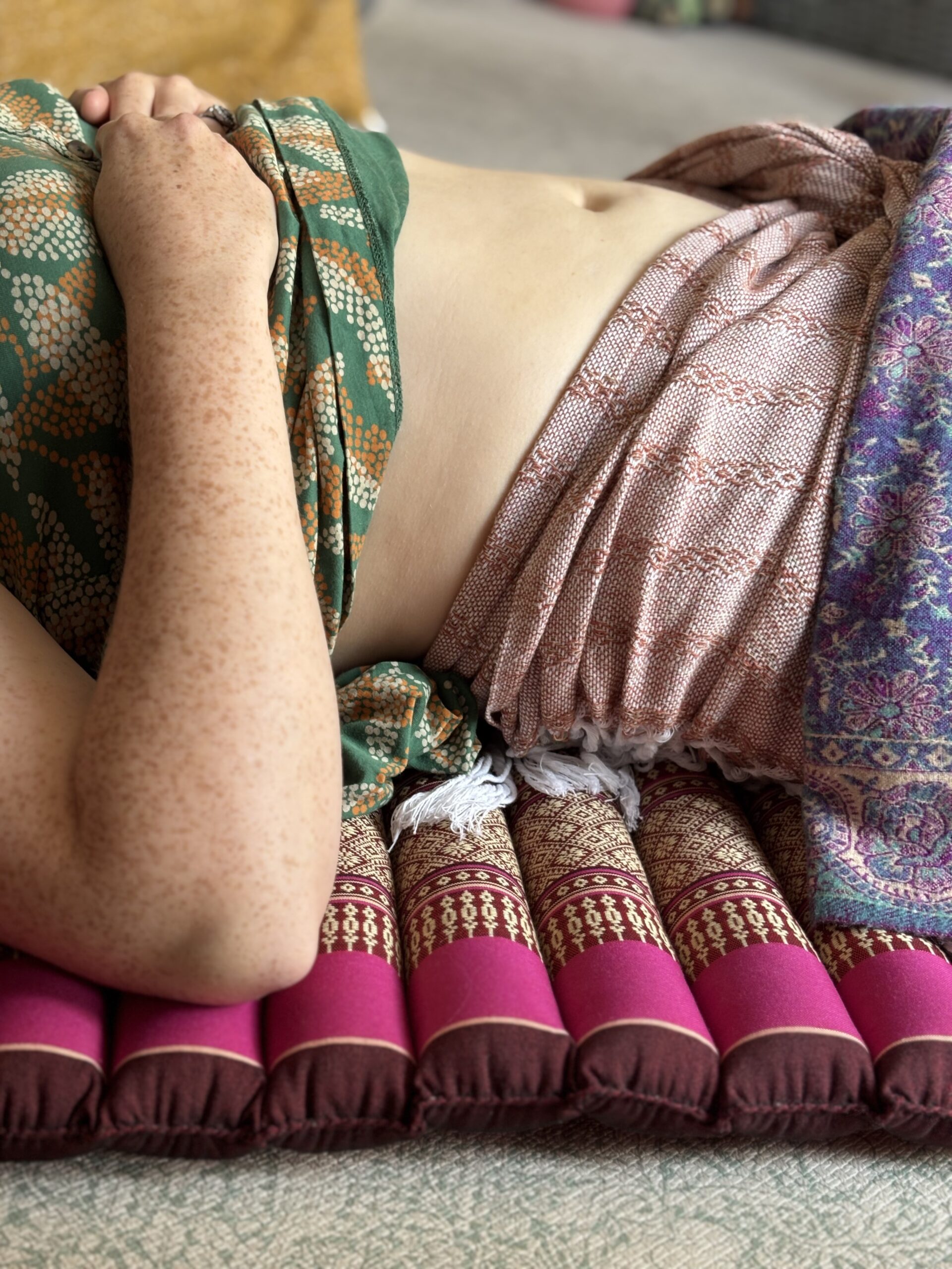 Consisting of a self exploration session, wrapping the hips with a rebozo, stomach massage and meditation. This sacred practice aims to close down the chakras and energy points in the body whilst also exploring how the body and mind is feeling and has felt throughout the fourth trimester and beyond.